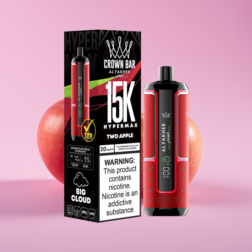 Al Fakher Crown Bar 15K Hypermax Disposable Vape Kit Două Mere, 22ml, 15.000 Puffuri