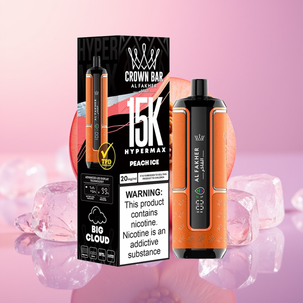 Al Fakher Crown Bar 15K Hypermax Disposable Vape Kit Peach Ice 22ml 15K fumuri 6mg/ml