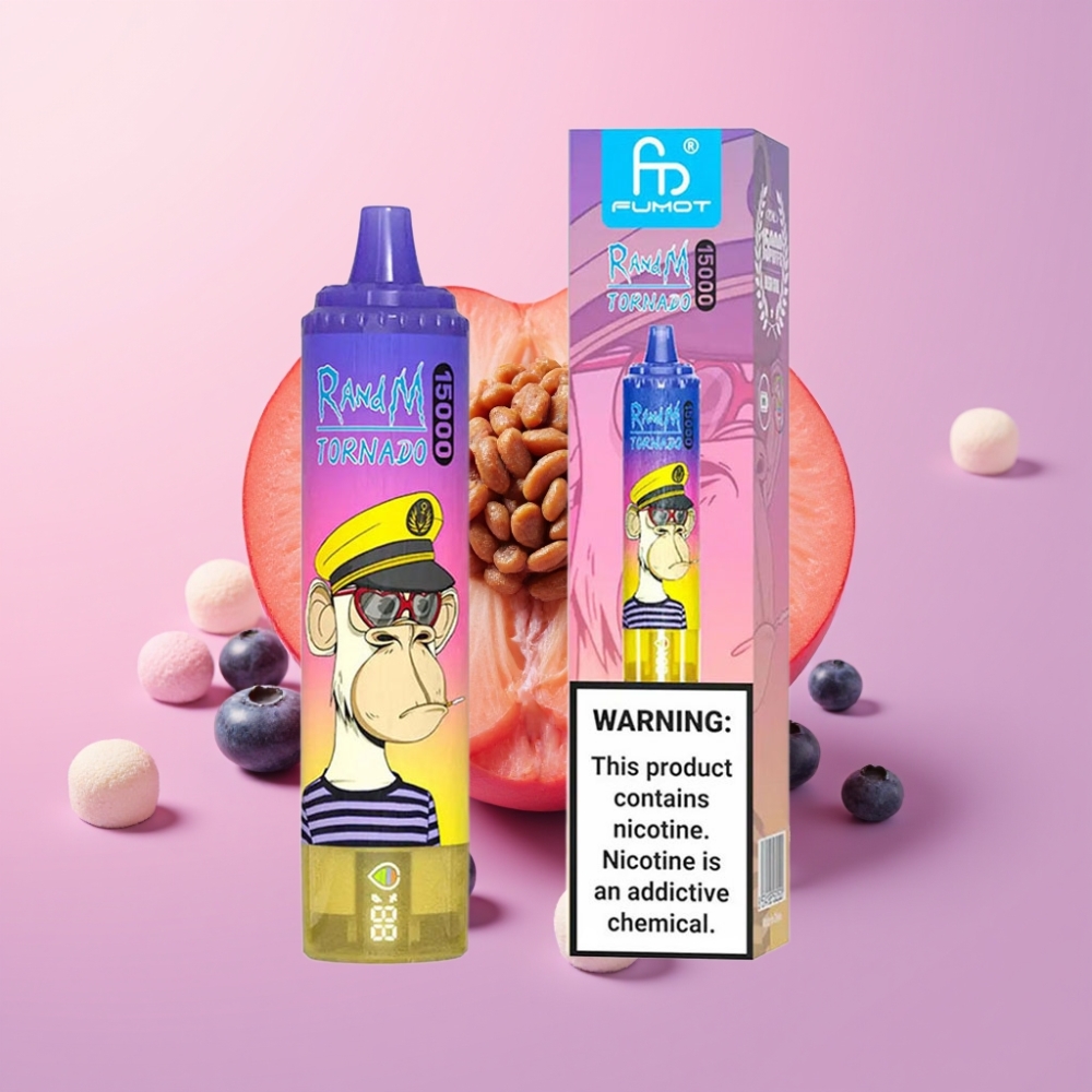 Fumot RandM Tornado 15000 Pufuri – 25ml, 850mAh, Tip-C, Afine piersică bomboane