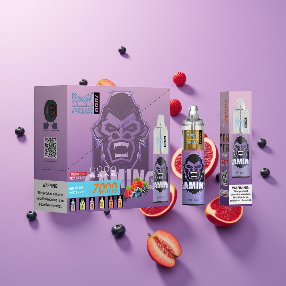 Fumot Tornado 7000 Dr. Albastru, 7000 Pufări, 14 ML, 850 MAH, Mesh, Type-C, RGB, 0%-5% Nicotină, Reglaj Aer
