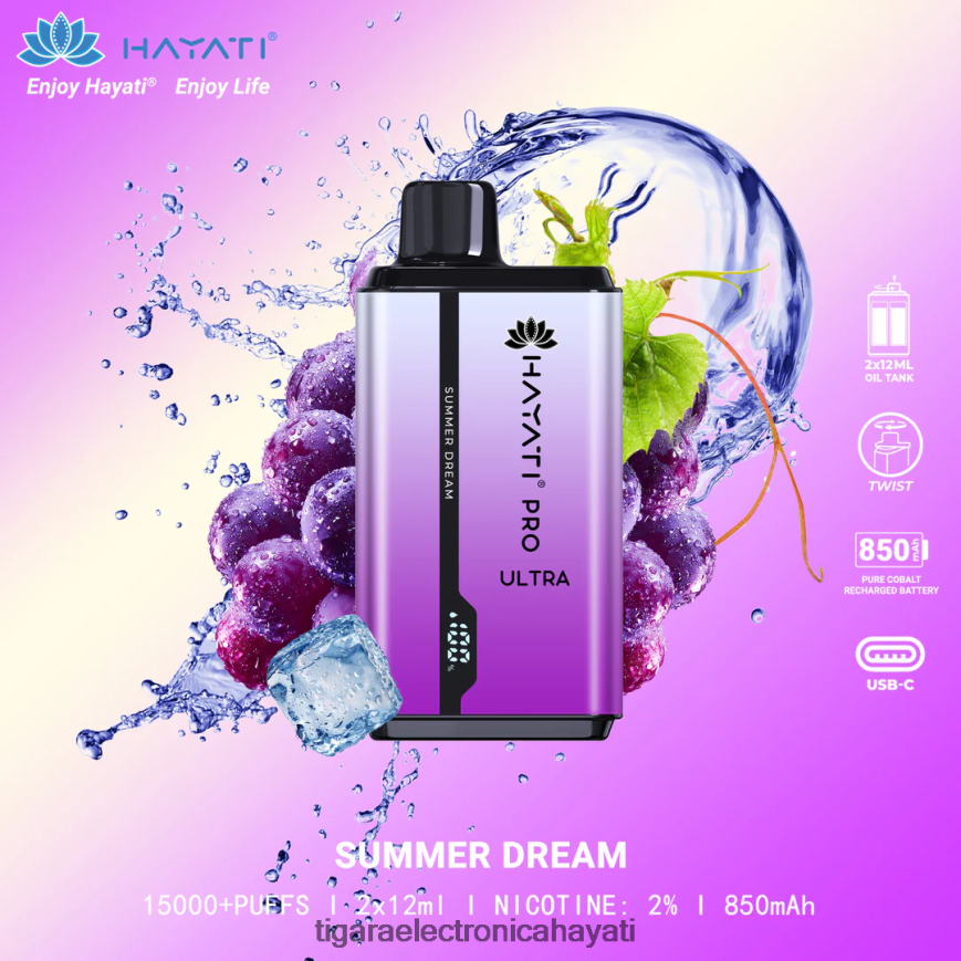 Hayati Vapes Flavours – Hayati Pro Ultra 15000 pufuri de unică folosință vis de vară N6ZJ48212