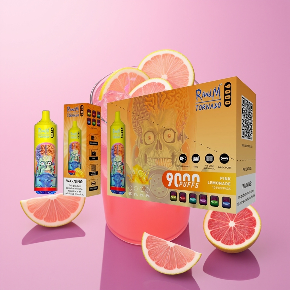 RandM Tornado 9000 Puffs Dispozabil Lămâie Roz, 18mL, 850mAh, Mesh Coil