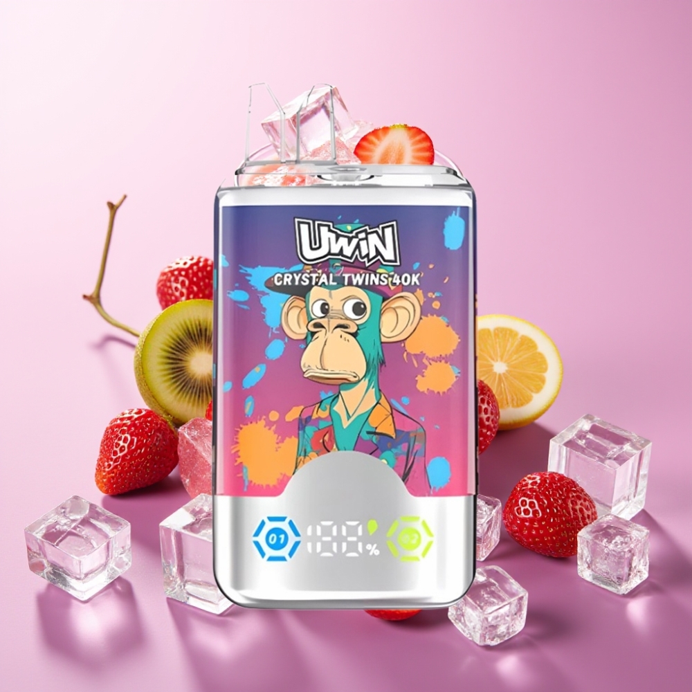 UWIN Crystal Twins 40000 Puffs Capsa Dispozabila cu Arome de Căpșuni, Kiwi și Struguri cu Gheață, 32ml, 850mAh, Type-C